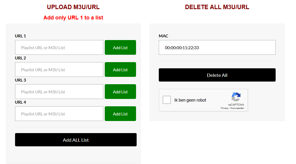 - 3. Därefter ska du ange M3U länken som du fått via mail från oss och tryck på Add list.